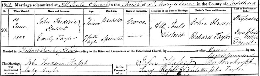 Street, Marylebone. Married Lucy COX on 22 Feb 1832 in Swindon,