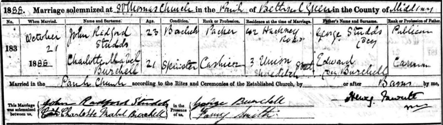 | 21 Oct 1888 | Marriage of John Radford STUDDS